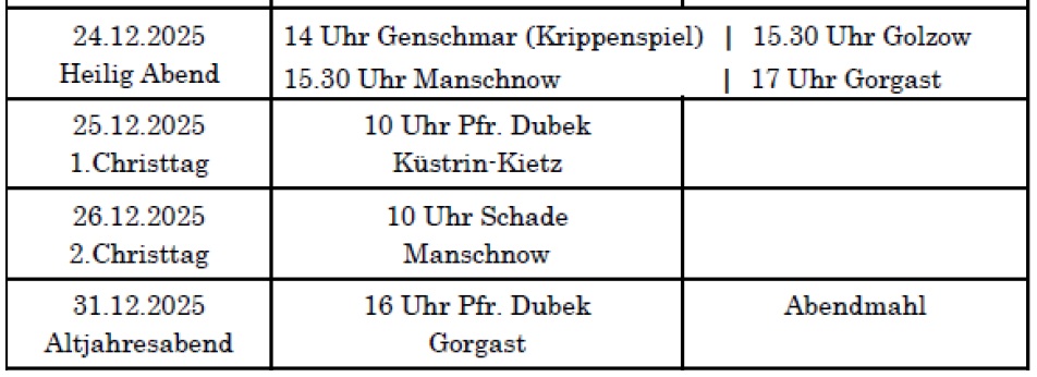 - Gottesdienste Weihnachten und Silvester. 23. Dezember 2025